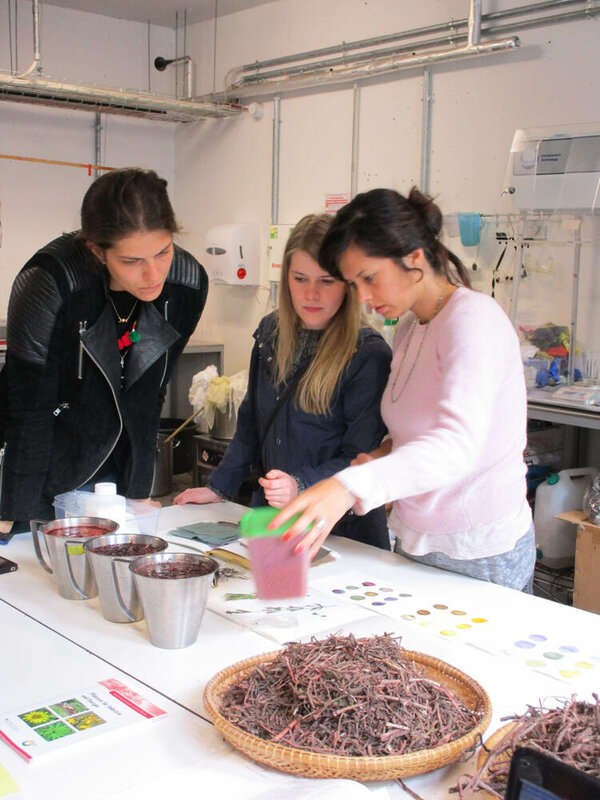 Die Färbewerkstatt wurde erweitert zur Werkstatt Färben+ , sodass ab sofort auch mit unterschiedlichsten biobasierten,“nassen" Materialien gearbeitet werden kann.